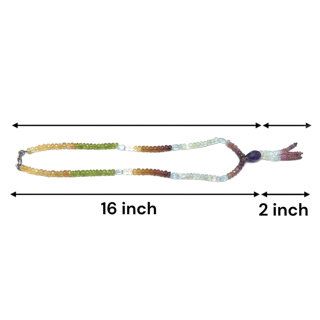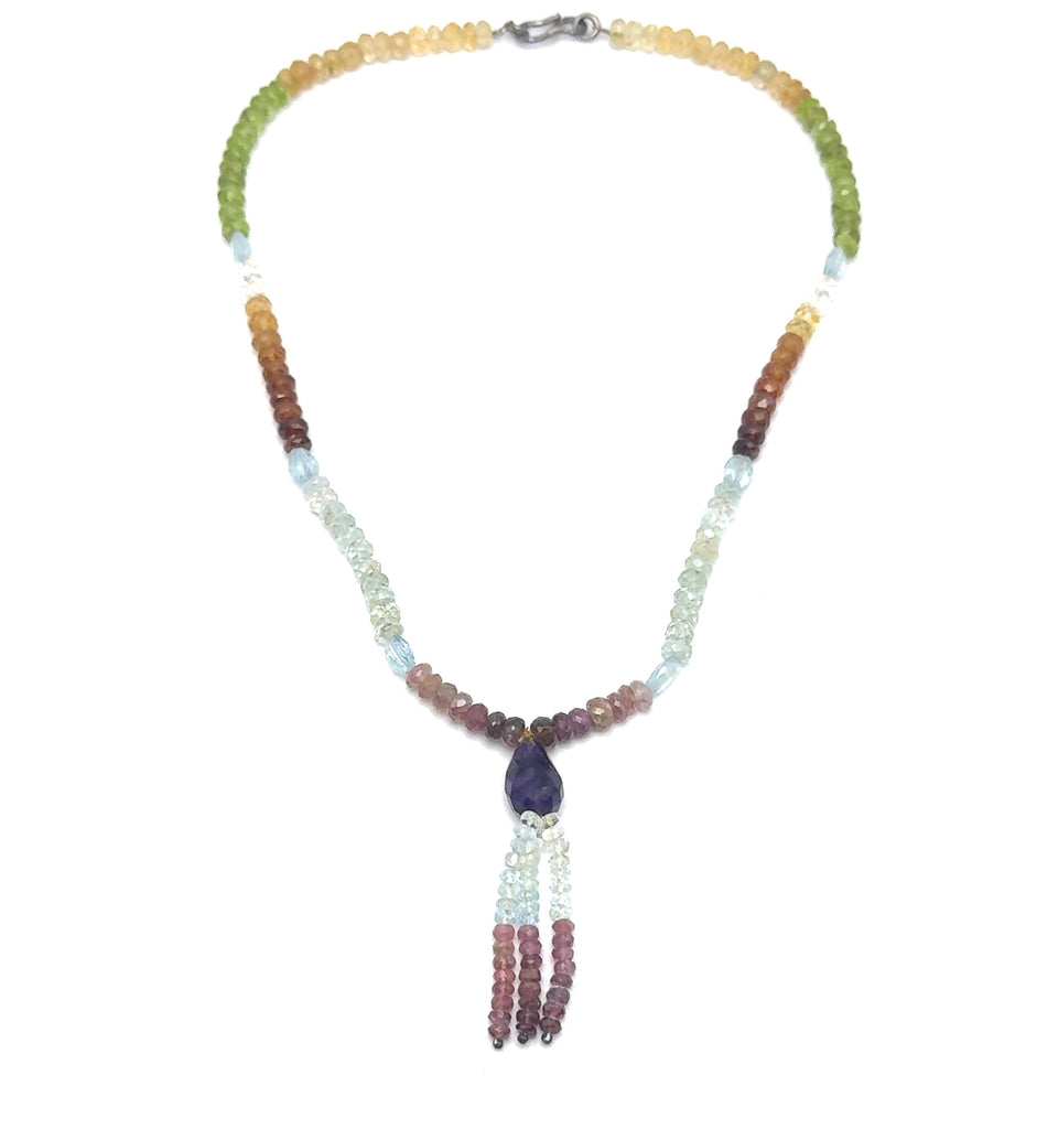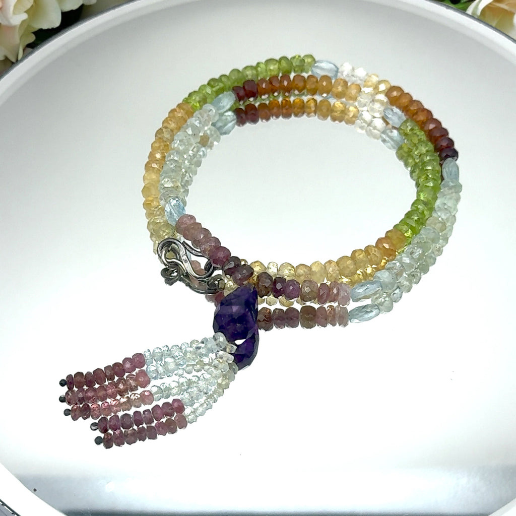 Pink Tourmaline Natural, Spessartite, Citrine, Peridot, Aqua, and Amethyst Necklace