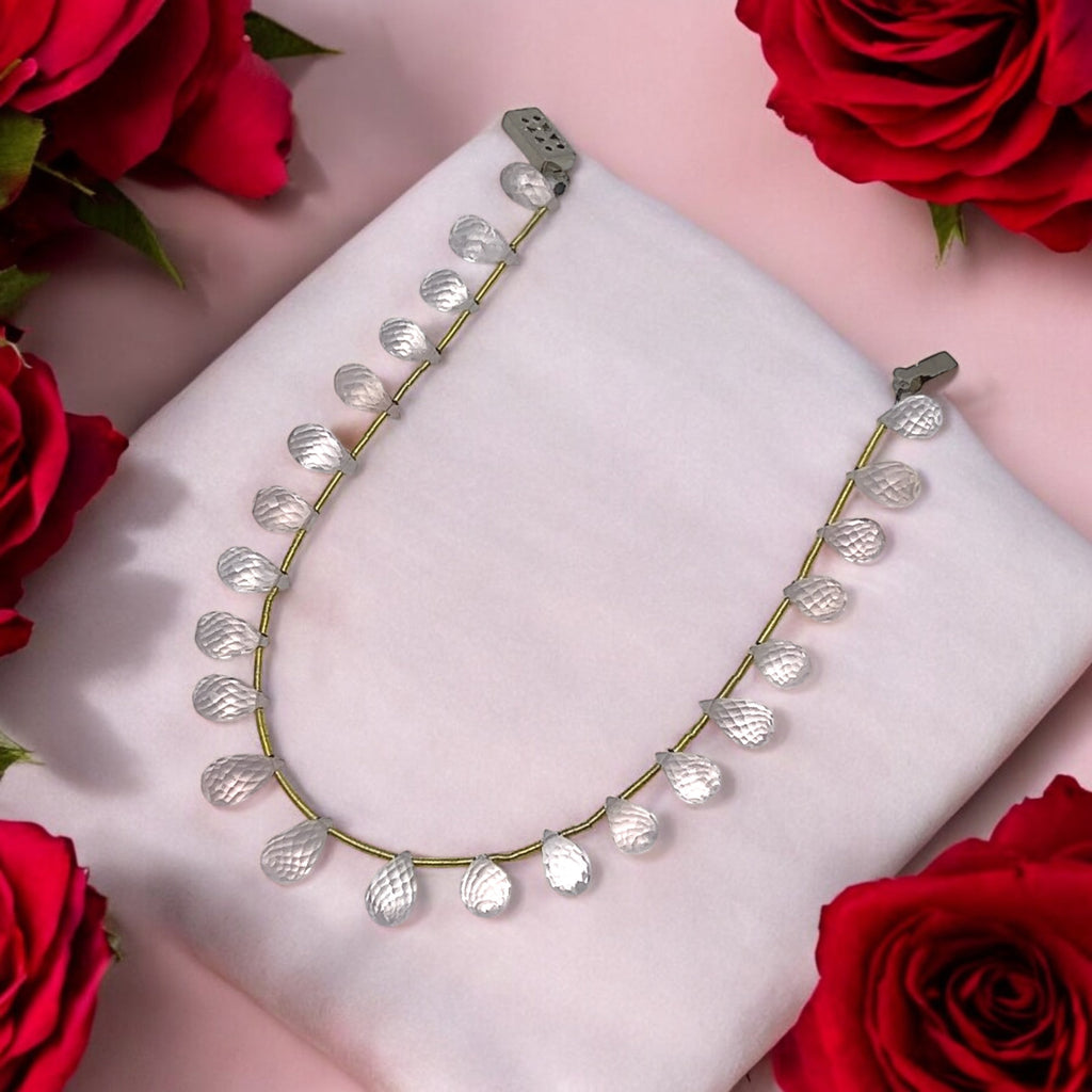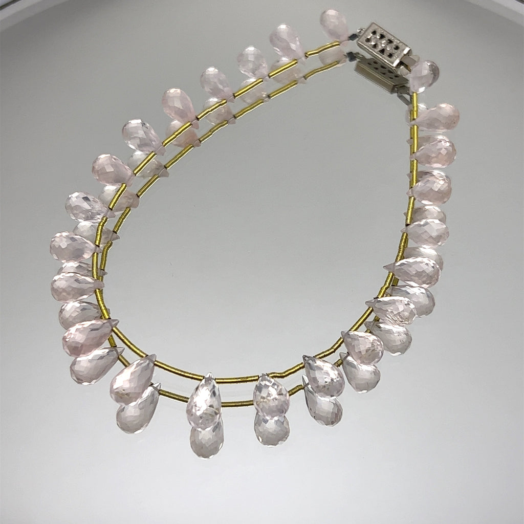 Rose Quartz Natural Briolette Facet Cut Drop Beads Gemstone Bracelet