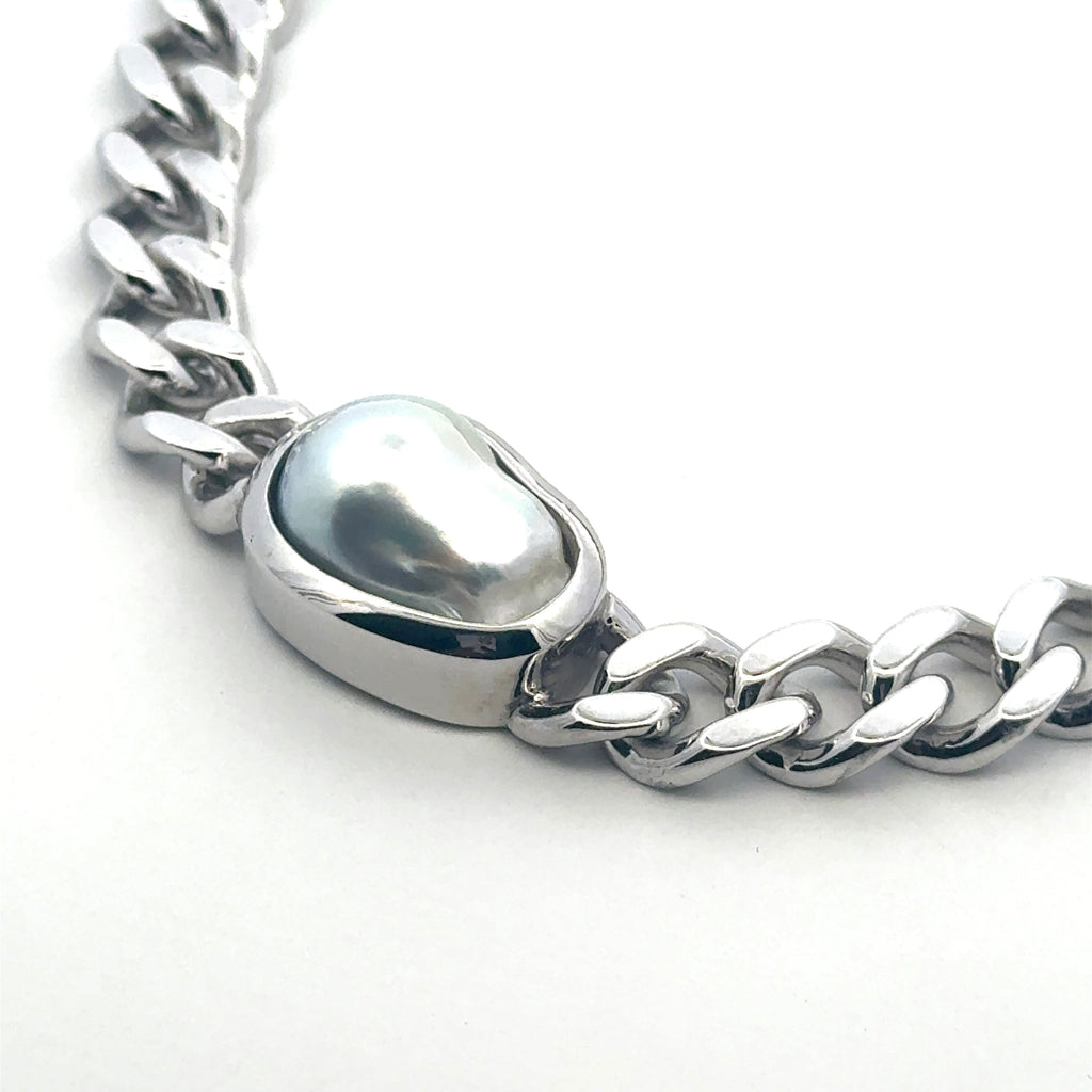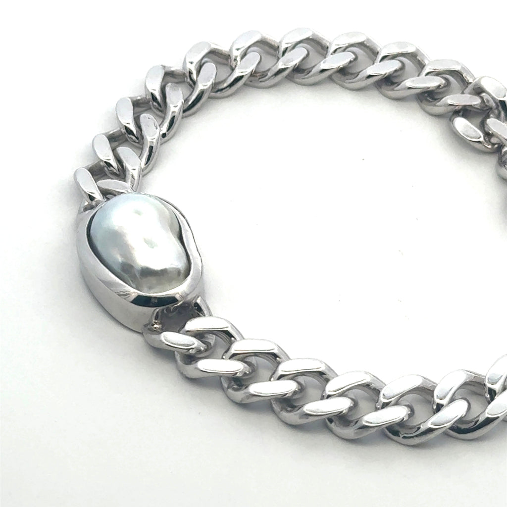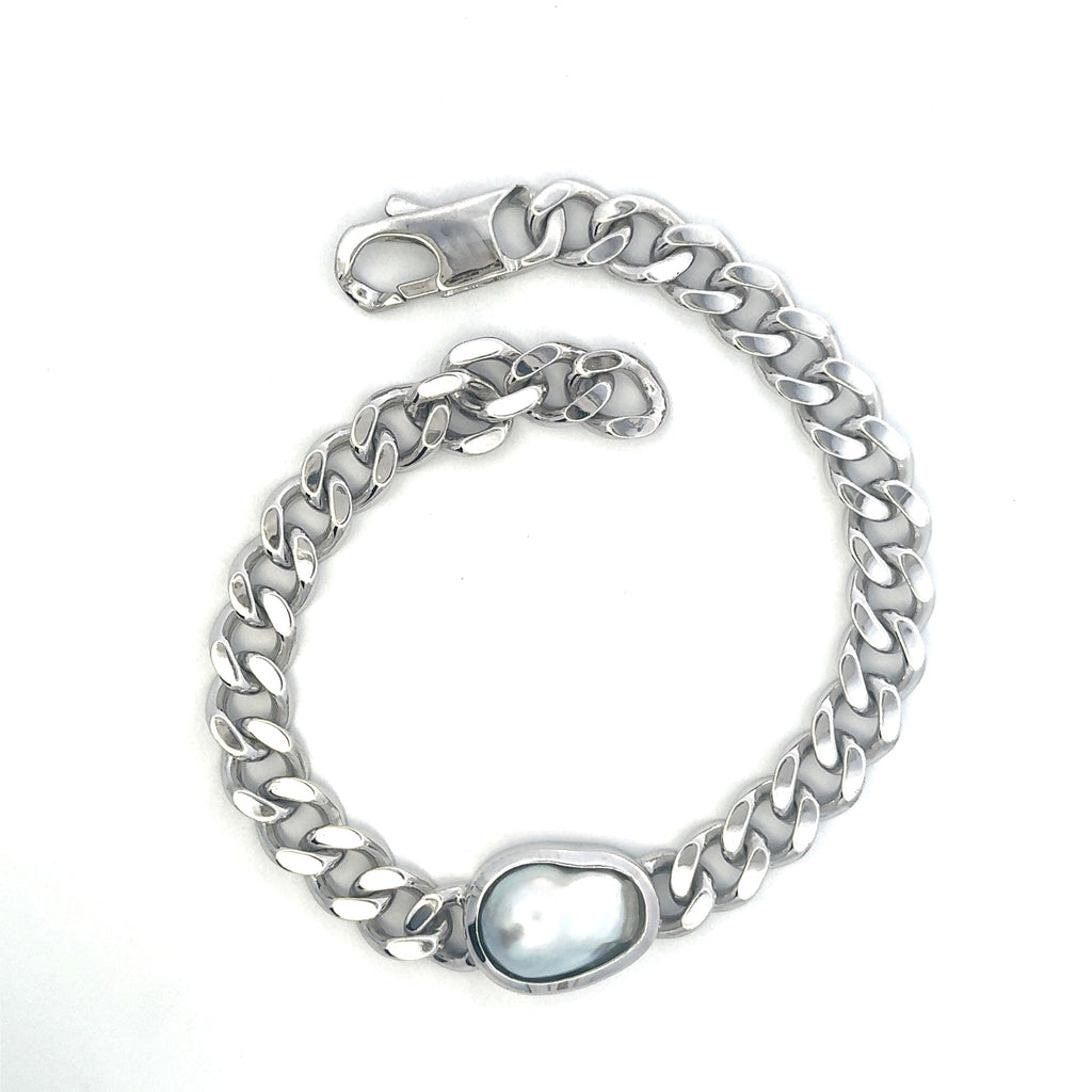 Bracelet South Sea Pearl Cuban Link Sterling Silver Unisex Bracelet