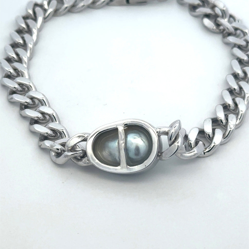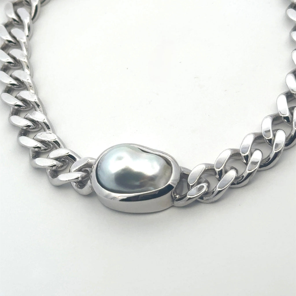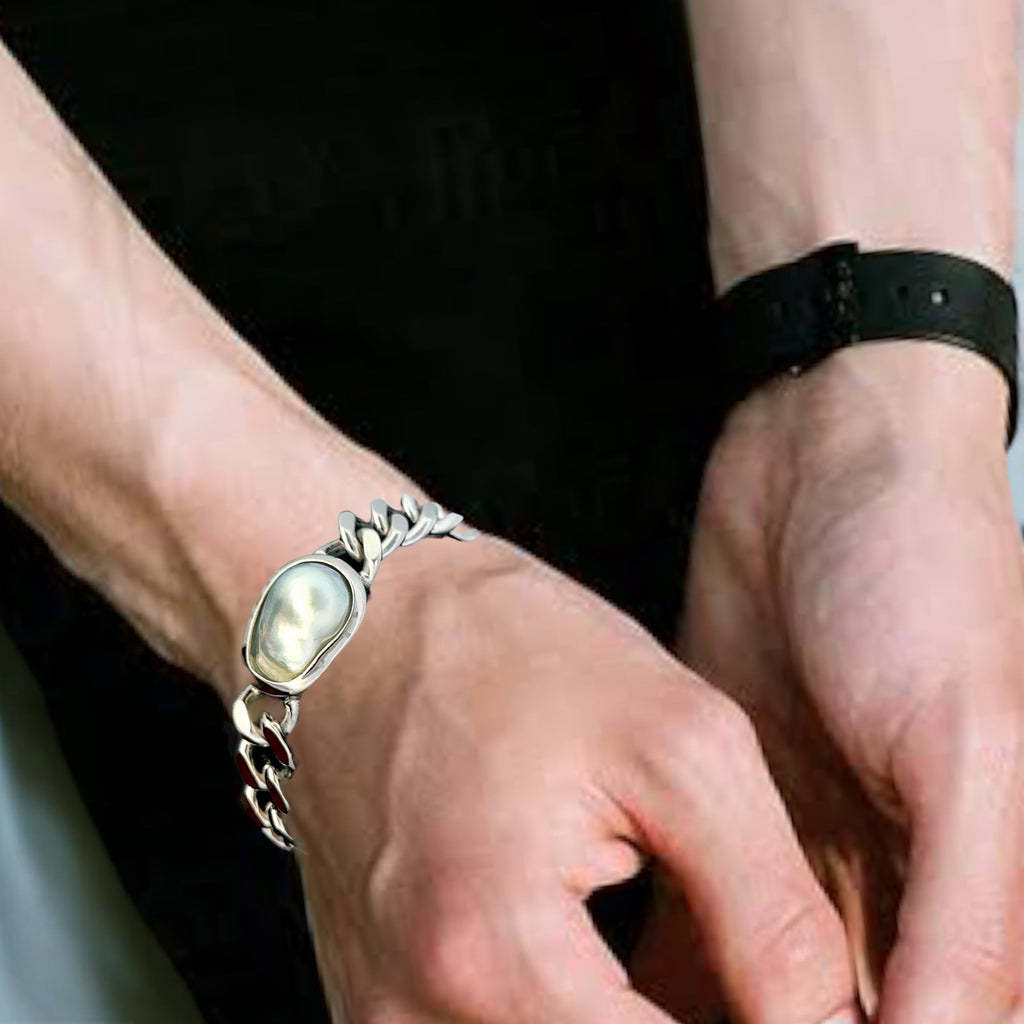 Bracelet South Sea Pearl Cuban Link Sterling Silver Unisex Bracelet