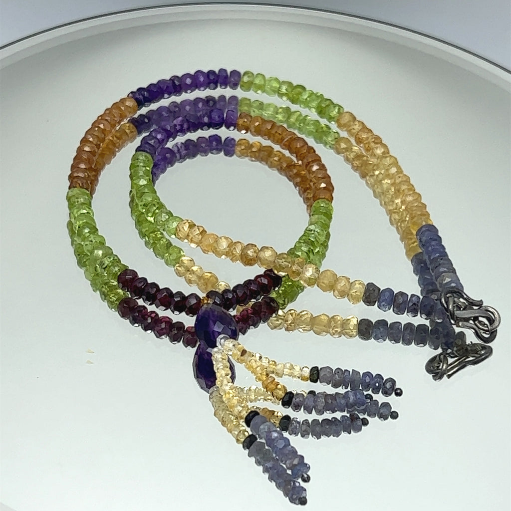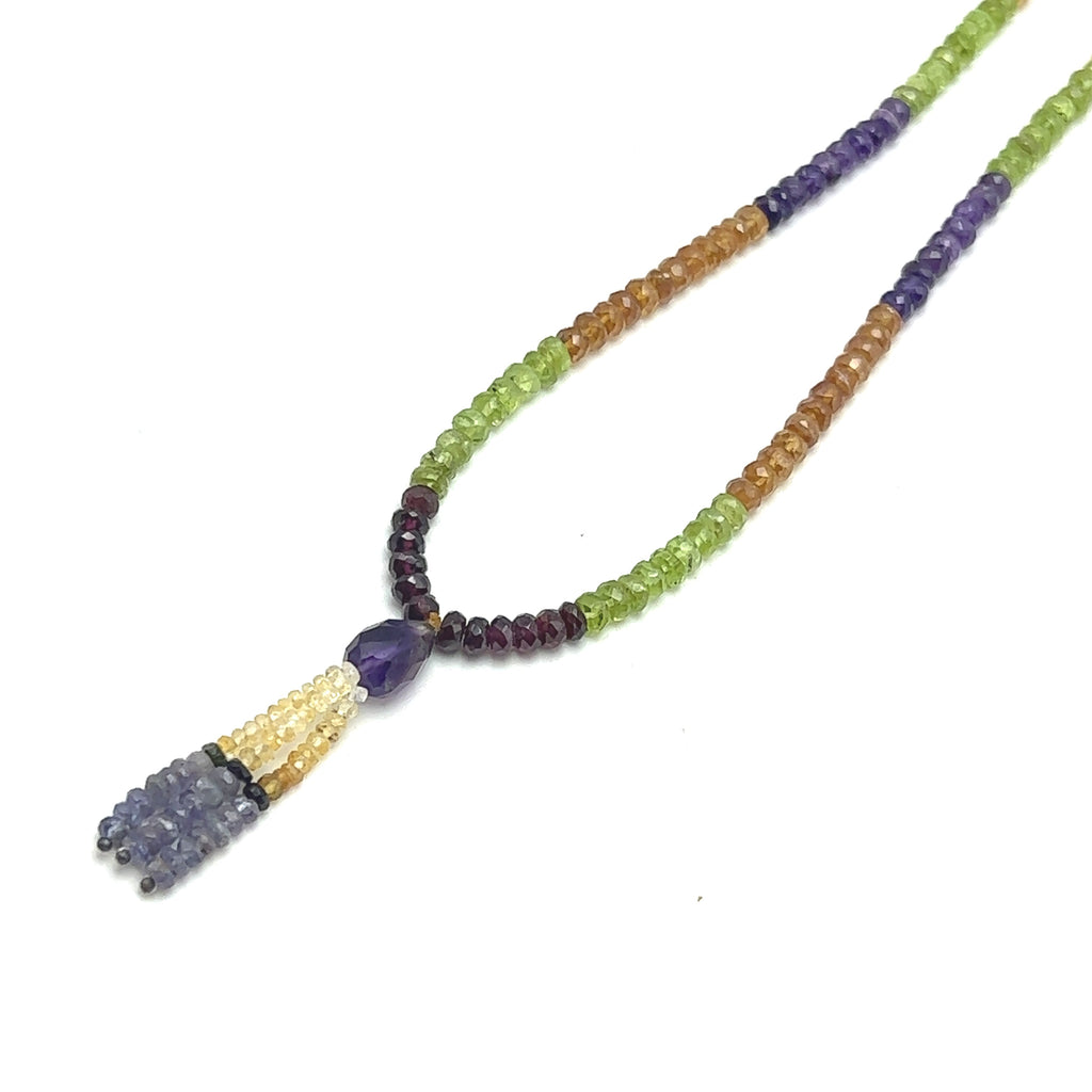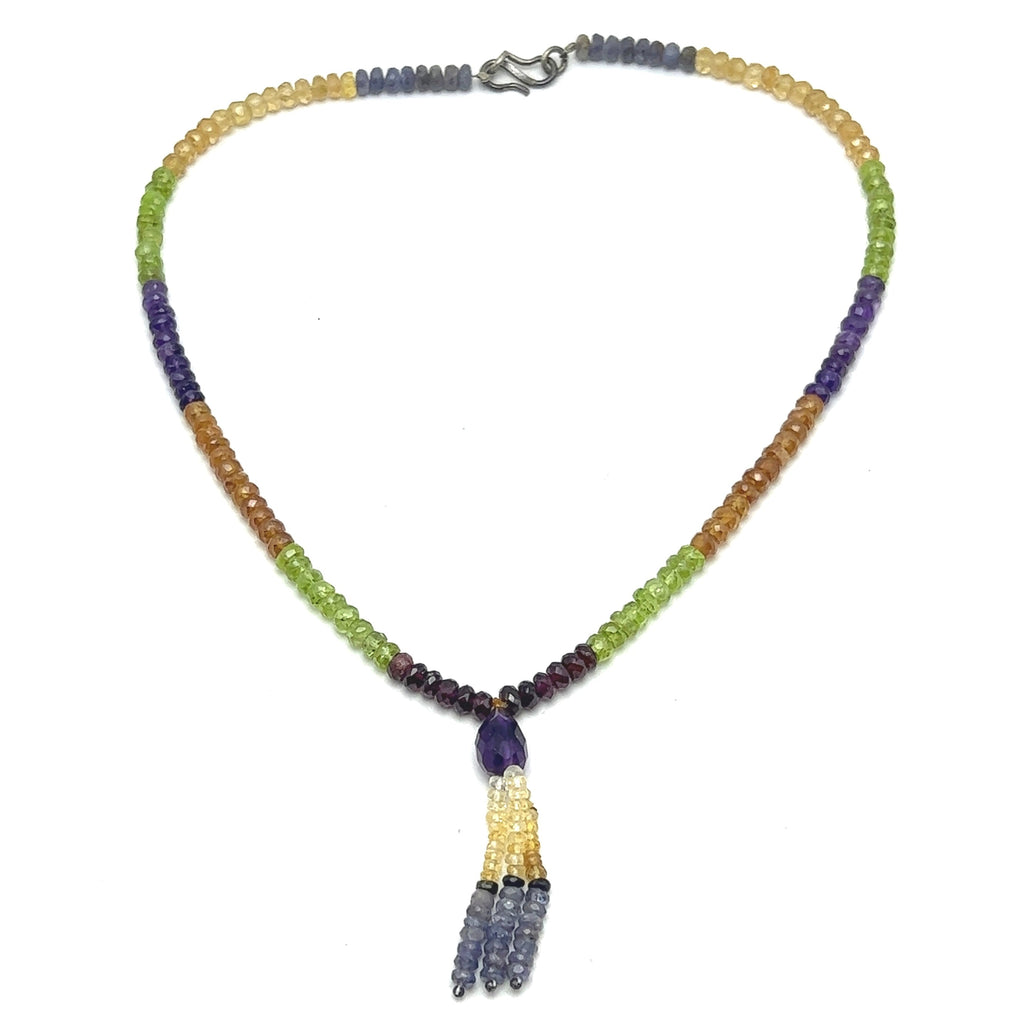 Spessartite Garnet Natural, Citrine, Tanzanite, Peridot, and Amethyst Necklace