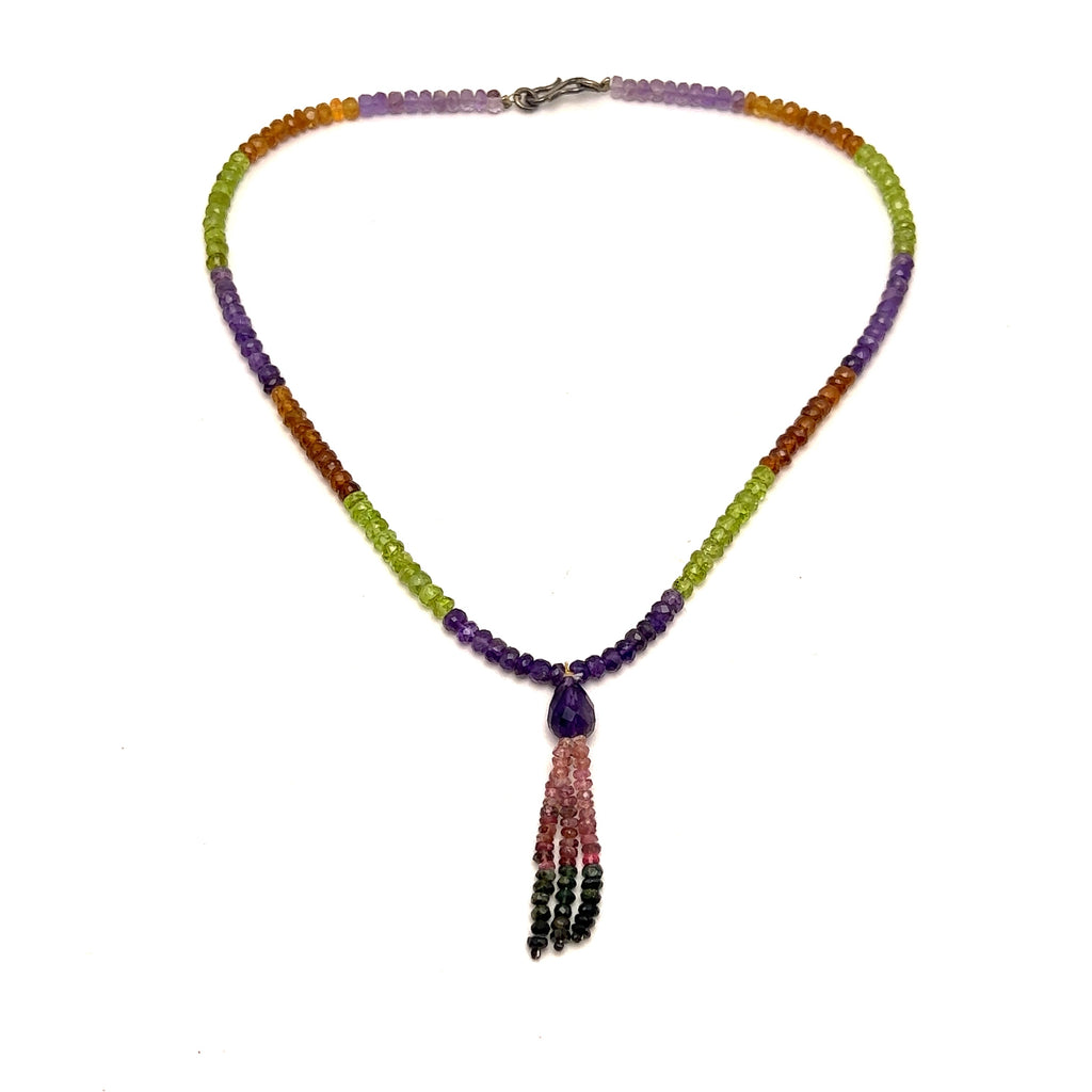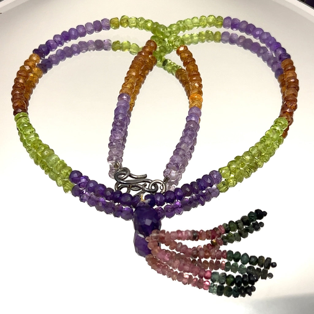 Spessartite Natural, Peridot, Amethyst, Pink, and Black Tourmaline Necklace