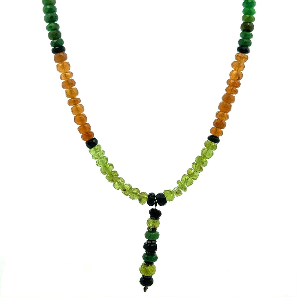 Spessartite Natural, Tsavorite, Peridot, and Black Tourmaline Necklace