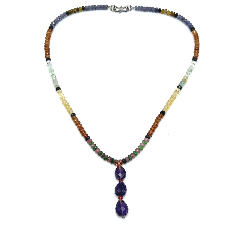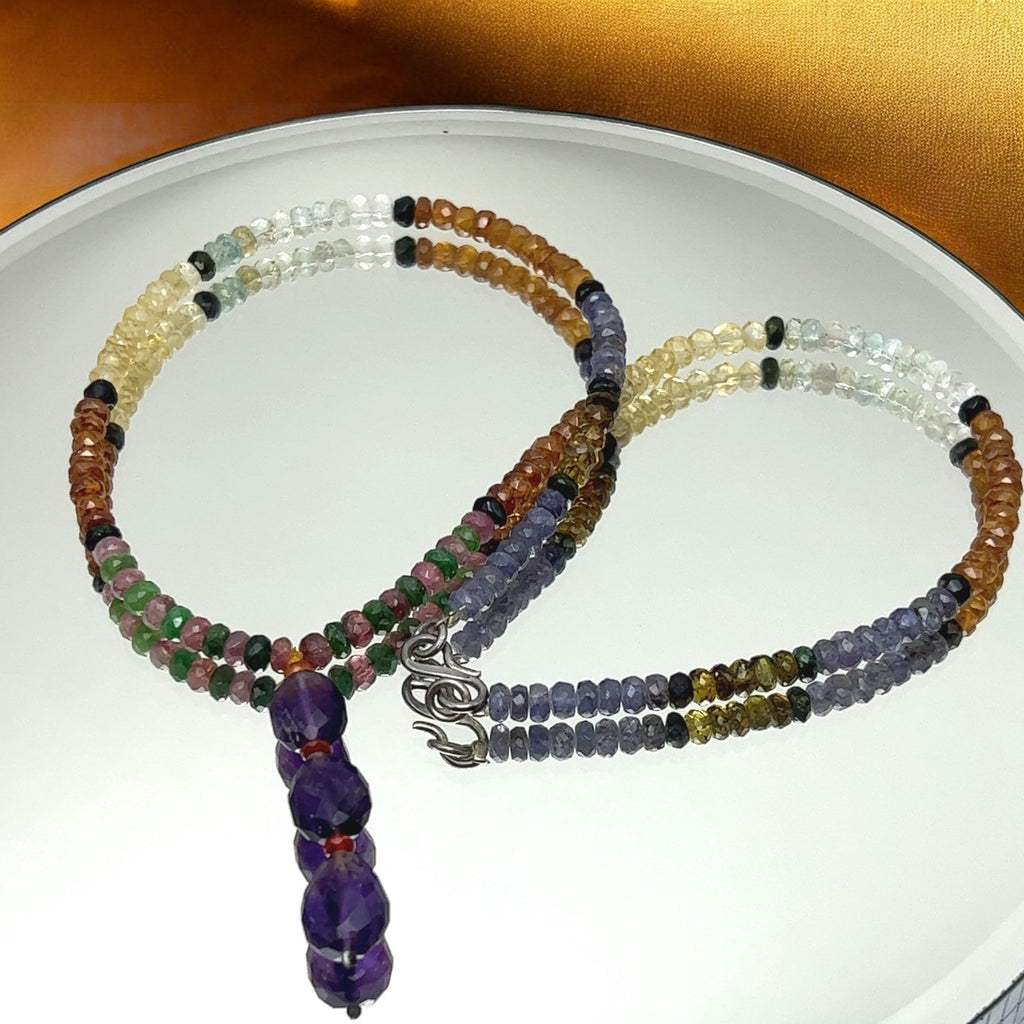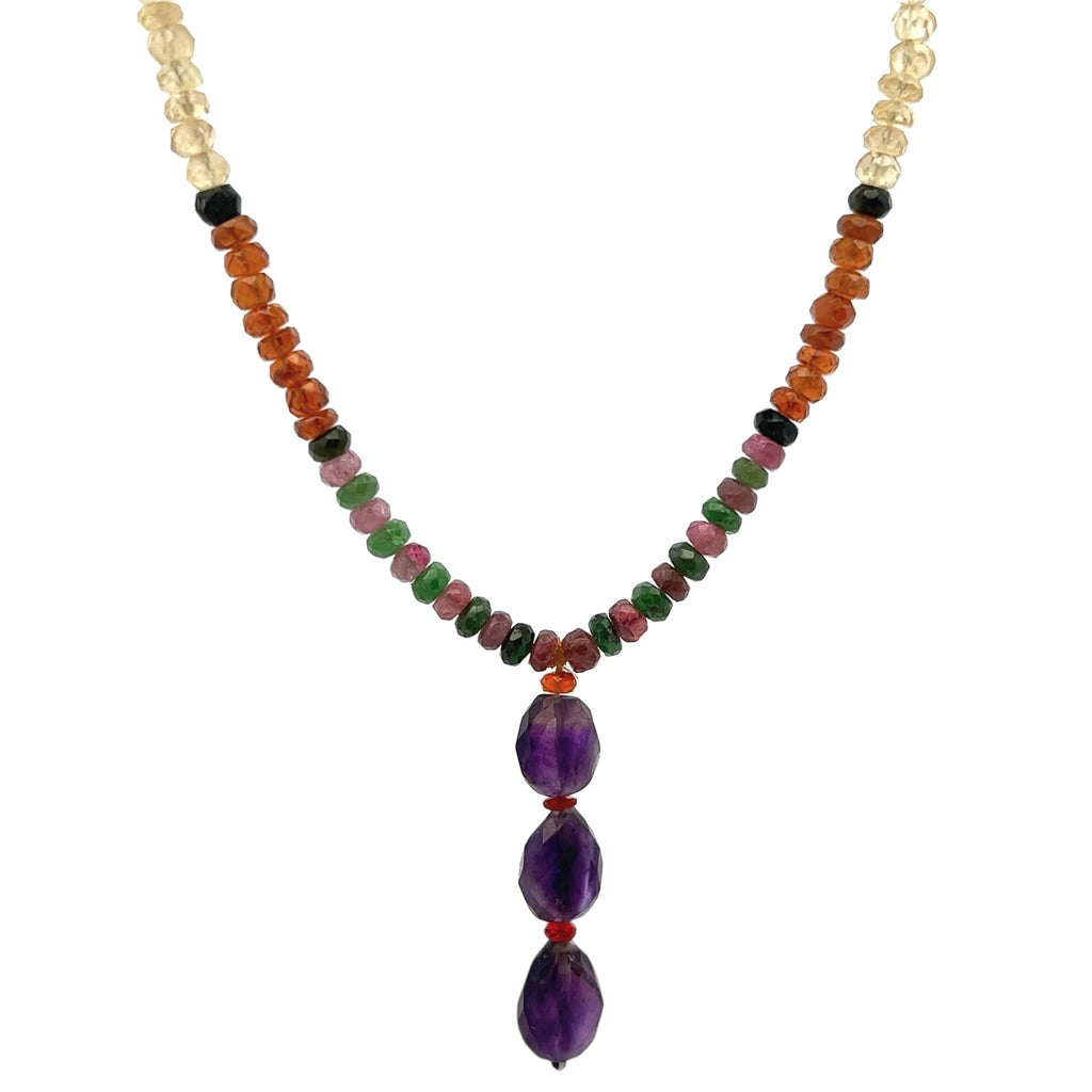 Tanzanite Natural, Spessartite, Black Tourmaline, Aqua, Citrine, Tsavorite, and Amethyst Necklace