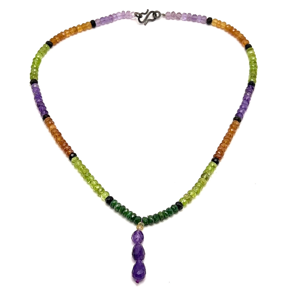 Tsavorite Natural, Black Tourmaline, Peridot, Spessartite, and Amethyst Necklace