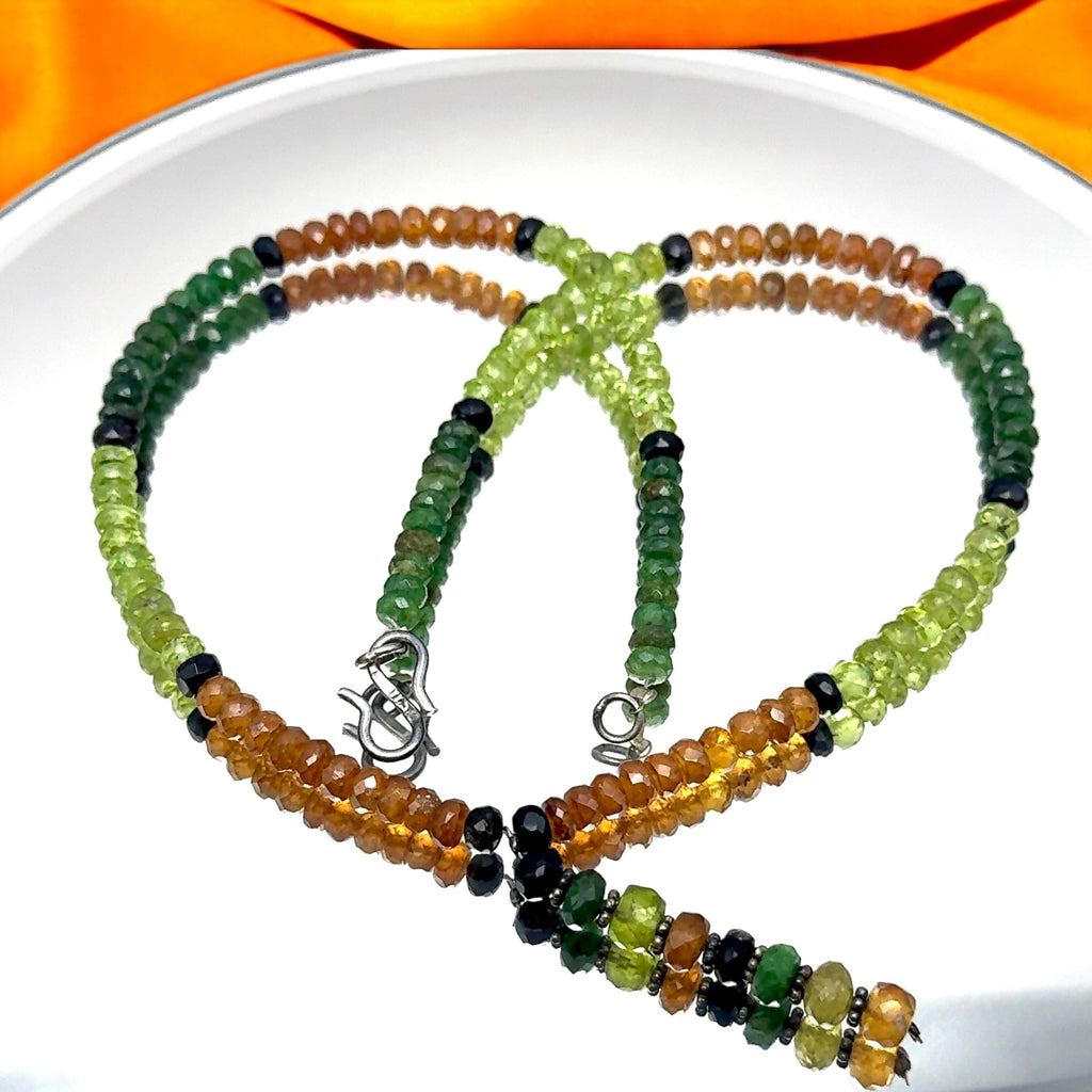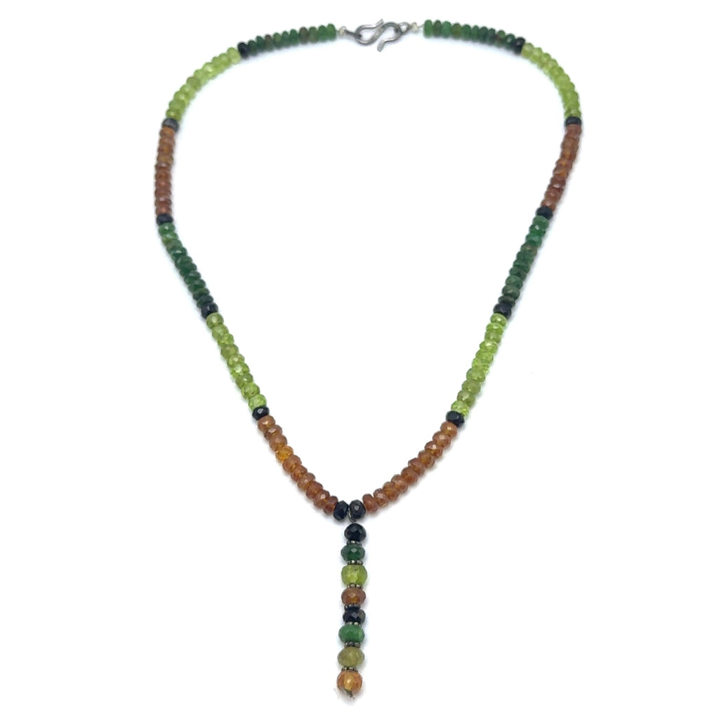 Tsavorite Natural, Spessartite Garnet, Black Tourmaline, and Peridot Necklace