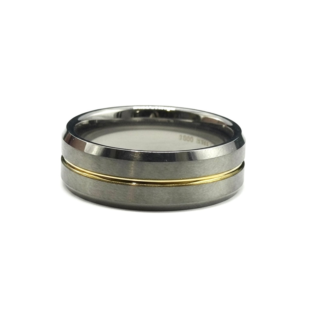 JEWELNJOY's polished silver tungsten band with a yellow center stripe adds a bold accent while keeping the profile clean and refined.
