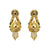 Inspired by South Indian heritage art, these elongated danglers feature dual circles connected by an arched pattern. Embellished with green and maroon meena enamel work, the chain drop adds graceful length.