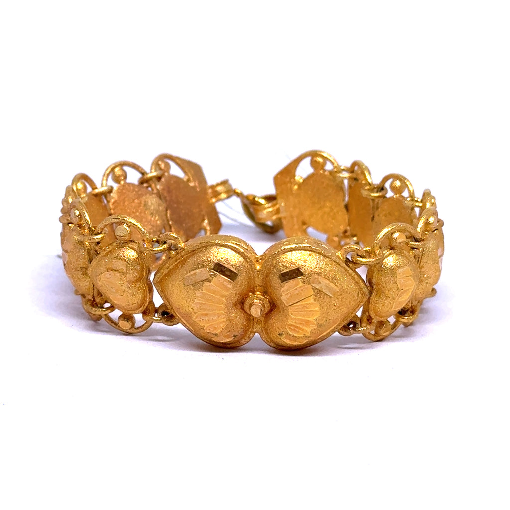 Celebrate romantic elegance with this Yellow Gold Micron-Plated Heart Bracelet, a delicate piece adorned with fine engraving and a smooth, radiant micron gold finish. Designed to express love with subtle beauty, this bracelet blends sentimental charm with refined craftsmanship for a timeless accessory.